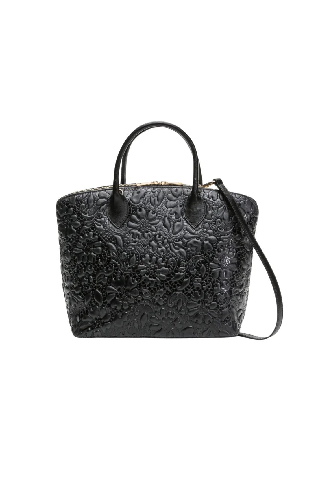 Zoe – Vera Pelle con rilievi floreali – Colore Nero