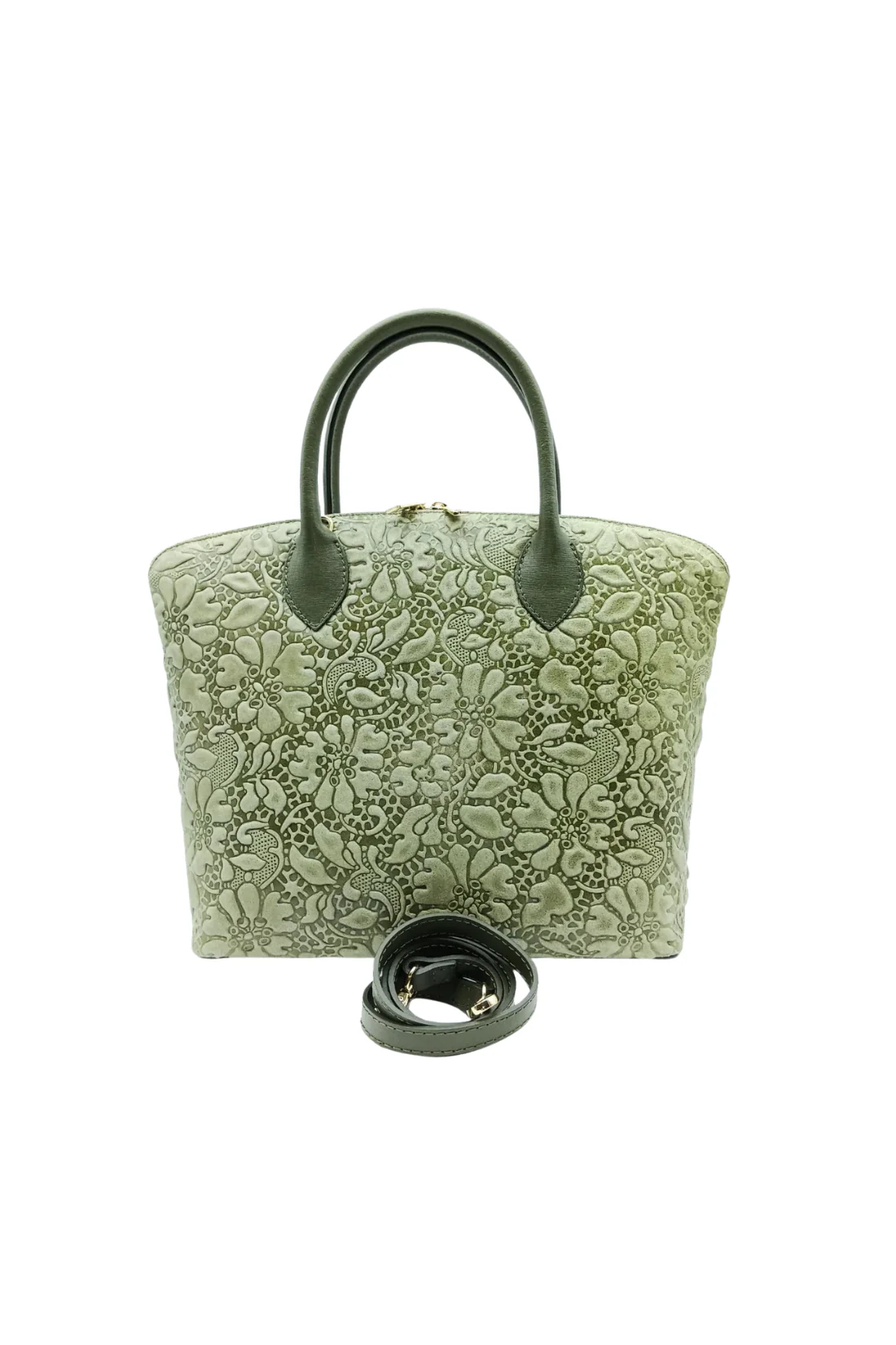 Zoe – Vera Pelle con rilievi floreali – Colore Verde Chiaro