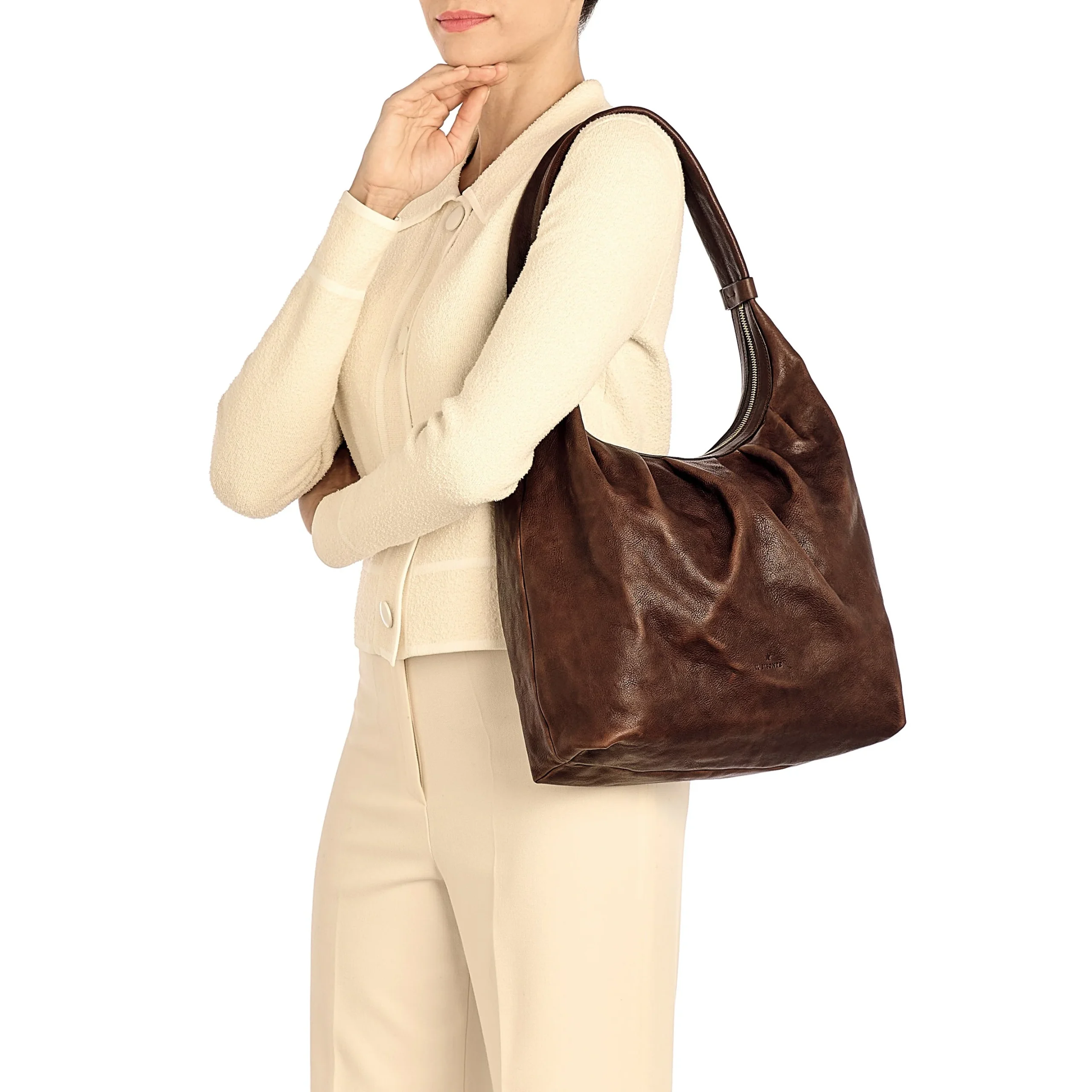 Accademia | Hobo da donna in pelle invecchiata colore caffè