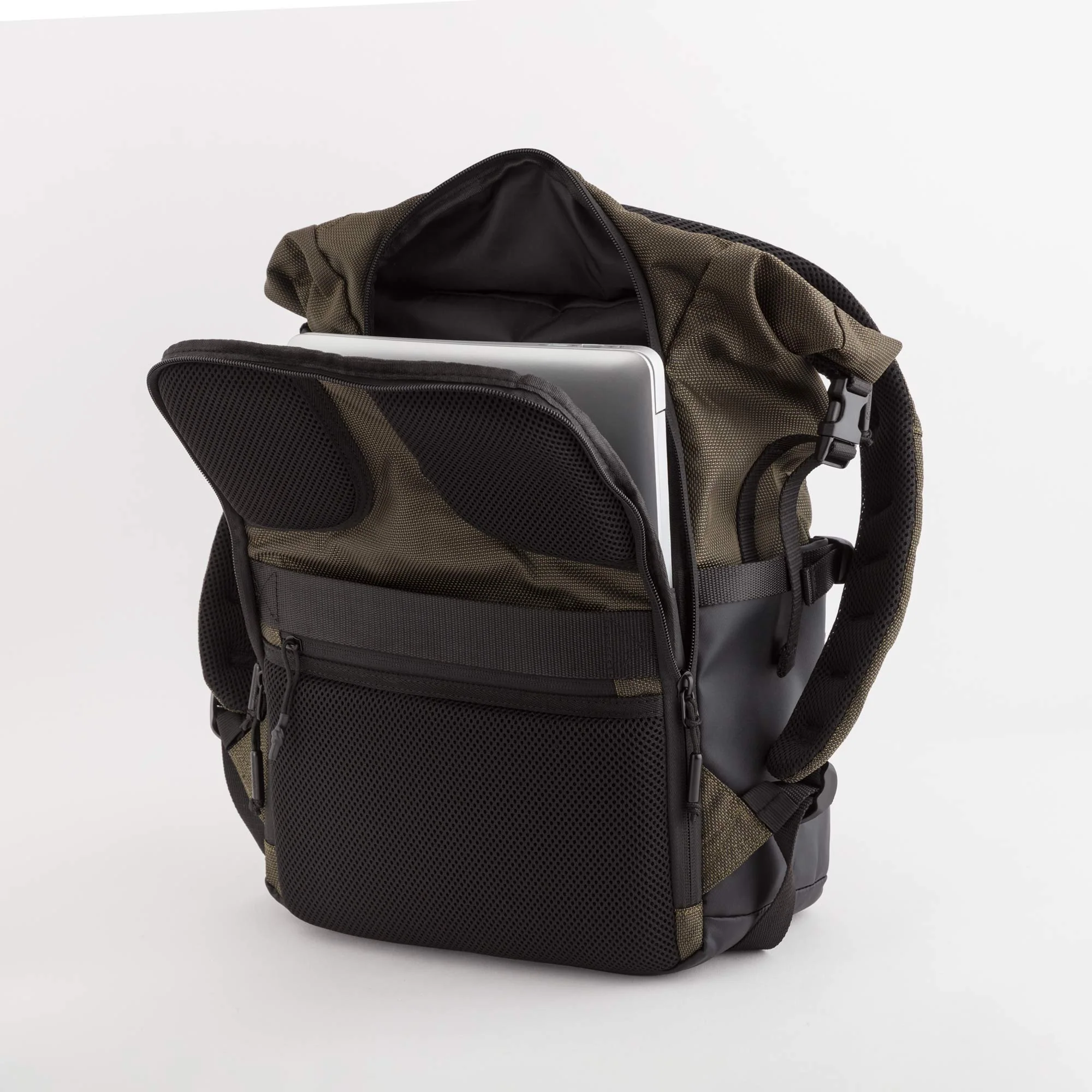Realizzato in poliestere tecnico, presenta chiusura roll-top con vano imbottito per pc fino a 15” e tasca di sicurezza. Le dimensioni (17 litri di capacità) lo rendono ideale come bagaglio a mano compatibile con le misure ”cabin size Easyjet”. La costruzione multi-livello e i dettagli funzionali garantiscono resistenza e praticità in ogni occasione, dal viaggio alla vita quotidiana.