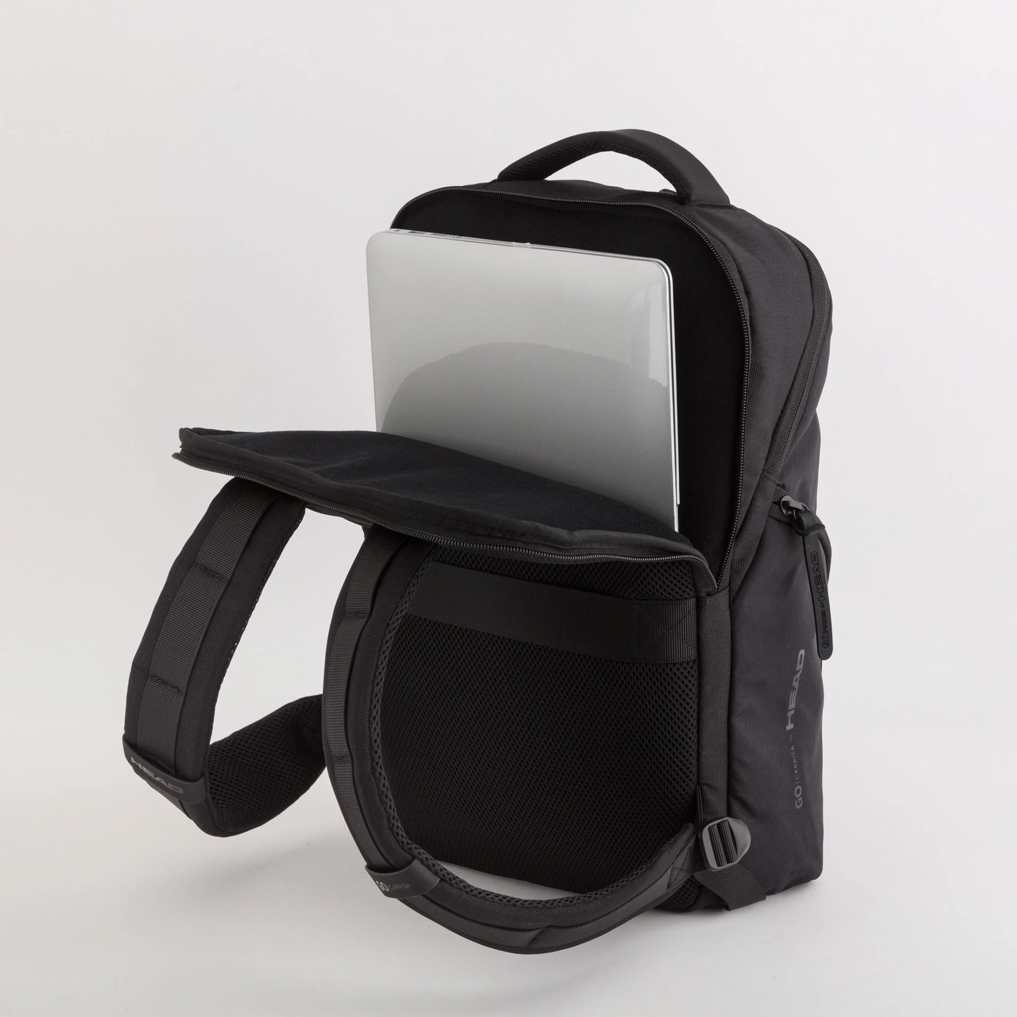 Realizzato in R-PET con texture effetto striato e logo Head stampato con finitura leggermente lucida, include un vano porta pc fino a 15.6”, dettagli termoformati e una costruzione ergonomica per garantire il massimo comfort.